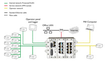 The RedFox Industrial’s WeOS operating system enables the communication network to be subdivided into three Virtual VLANs: A protected VLAN, using an encrypted VPN tunnel that is not accessible by the client, connects all the measuring and control instruments. A second VLAN connects to the rolling mill control computer and the third connects to the mill's office network. This provides a link to the Internet and enables the system to be monitored securely from outside the industrial network.